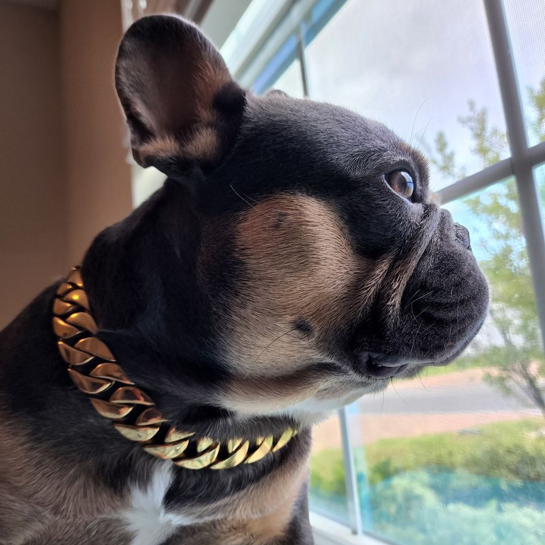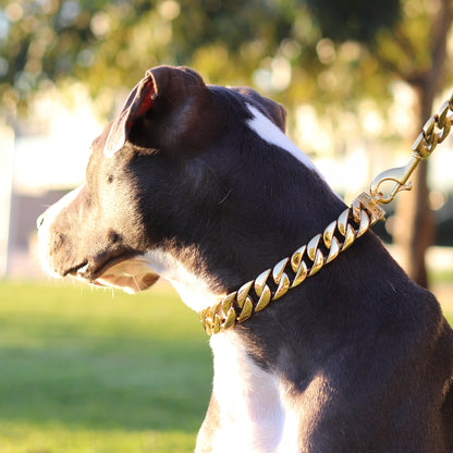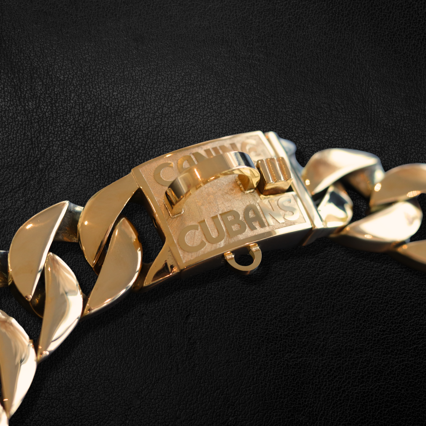 Elevate your dog's style with our 25mm Gold Mid & Mighty Chain. Featuring a solid 316 stainless steel core plated in 18k gold, this chain combines durability and luxury. Perfect for powerful dogs with a taste for the finer things. Buy now and let your dog shine in style!