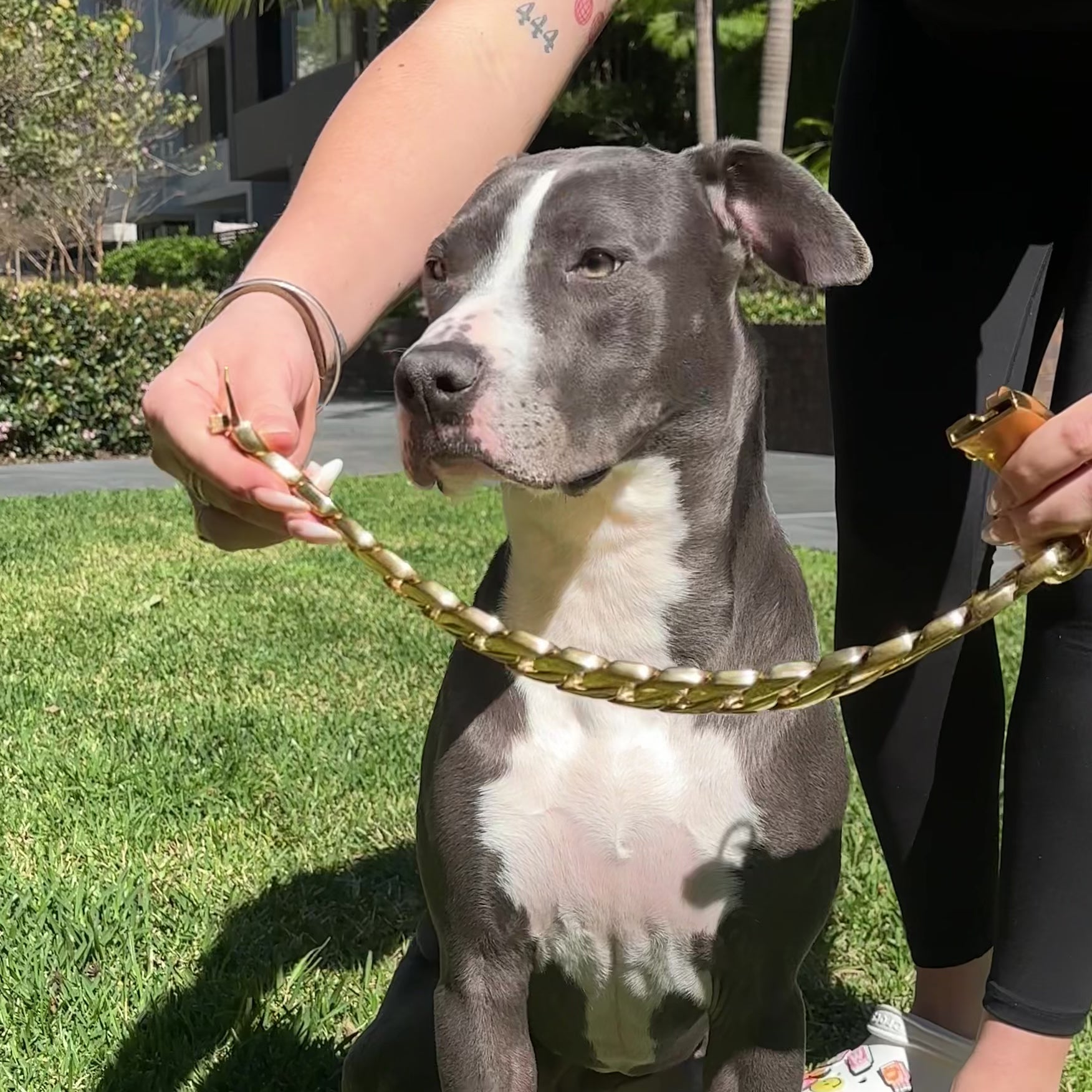 Make a bold statement with our 32mm Gold Big & Chunky Chain—our thickest chain yet. Featuring a sturdy 316 stainless steel core plated in luxurious 18k gold, this chain is built for strength and style. Perfect for powerful dogs who command attention. Buy now and let your dog stand out with unmatched confidence!