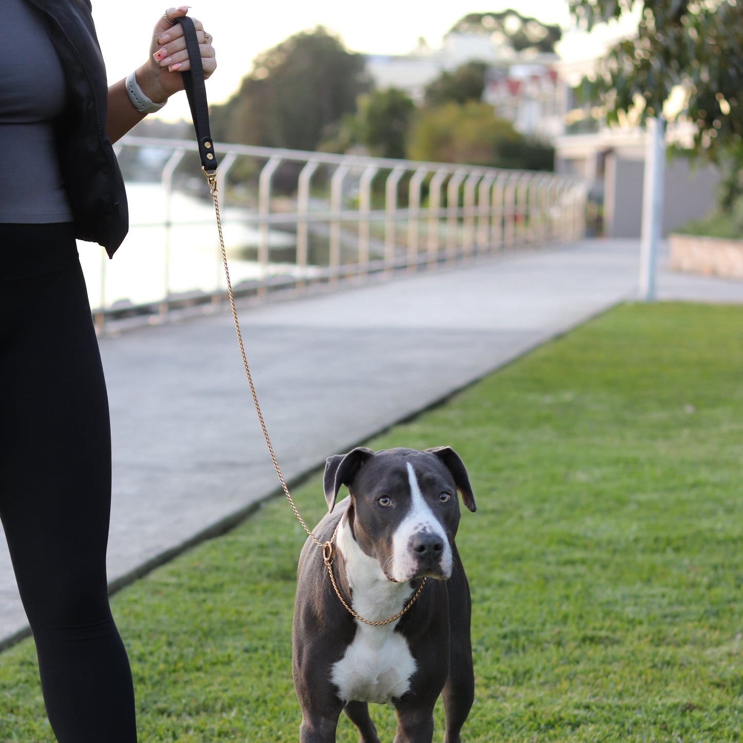 Really like the fact it doesn’t get caught on the links like other cheap slip collars. The leather handle is very nice too